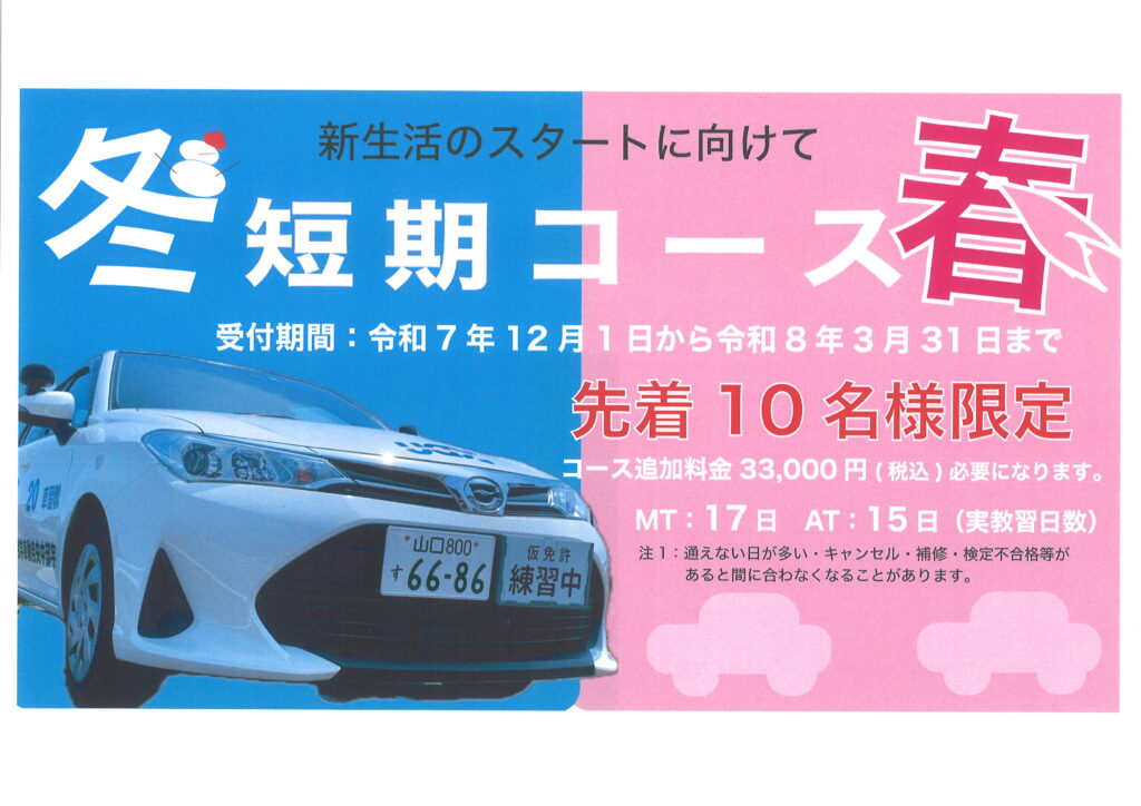 冬・春の短期コースのお知らせ😊